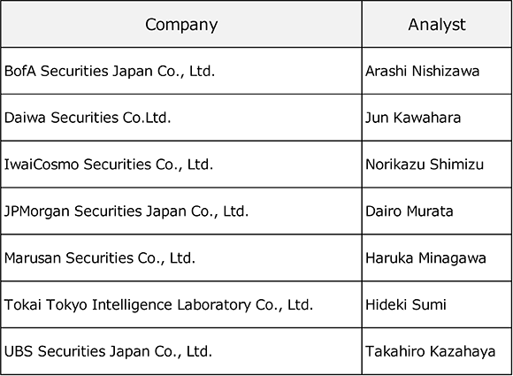 2. The securities companies shown in above table issue reports regularly. We would like to reiterate that the information in the above table might not entirely reflect the updated information of the analysts covering the Adastria and some analysts might not be listed.