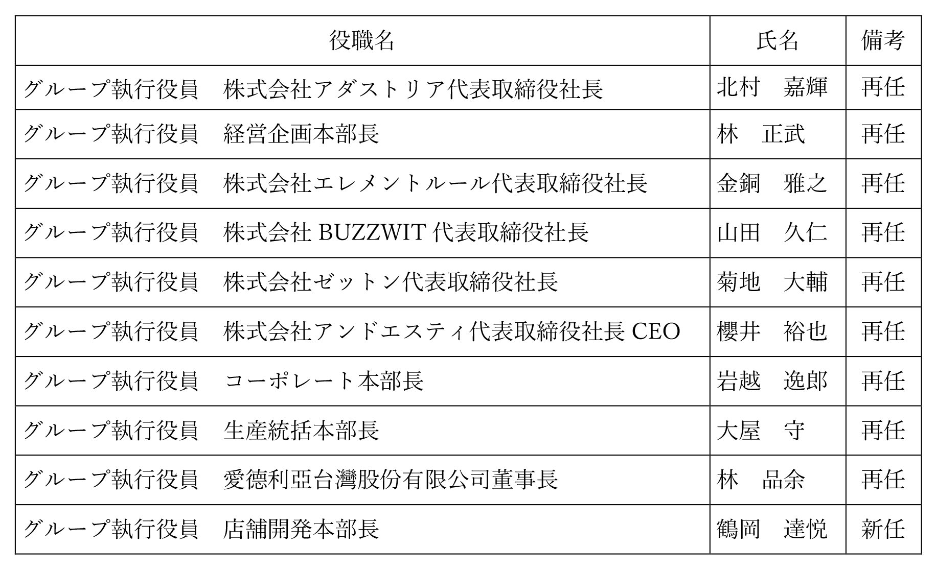当社は、本日開催の取締役会において、下記のとおり取締役候補者及び執行役員の人事について決議いたしましたので、お知らせいたします。