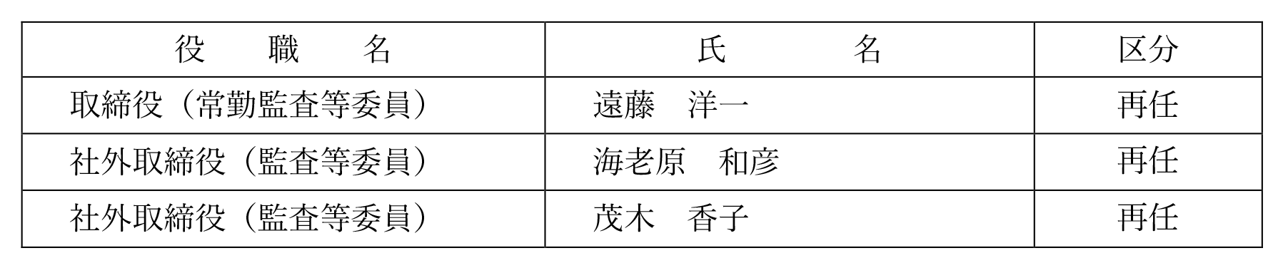 取締役候補者及び執行役員人事に関するお知らせ