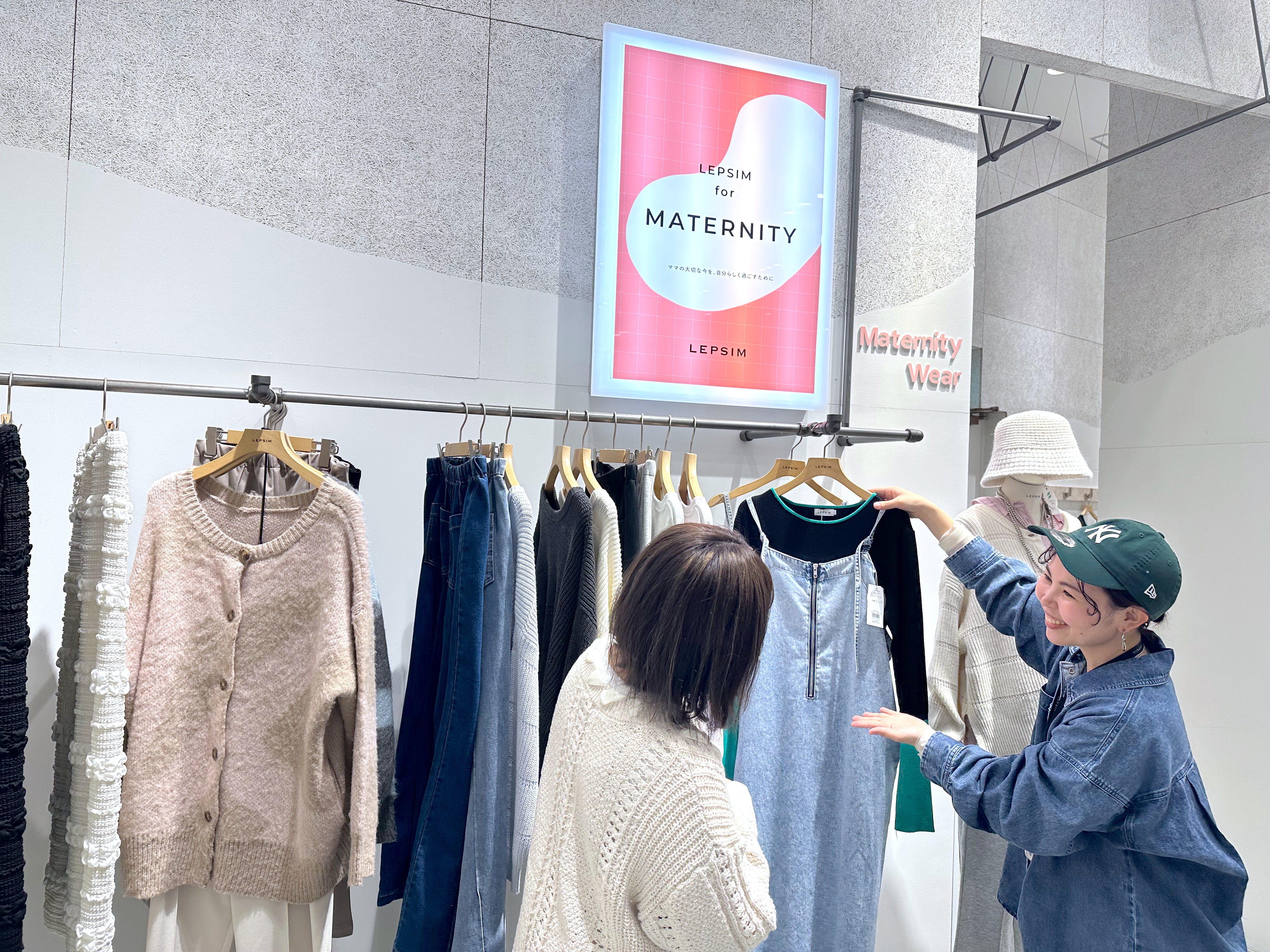 むしろ妊娠や出産を経験したからこそ、同じ境遇のお客さまに対して、以前よりリアリティを持って接客できるようになったとも感じます。レプシィムはアダストリアで唯一マタニティウェアを扱うブランドですが、何て言うんでしょう…妊娠に伴う体調の変化や悩みに、より寄り添ったご提案ができているというか。お客さまの体調面を以前より気遣えるようになり、妊娠周期に合わせた体型変化の相談にも乗れているように思います。これはすごく嬉しい変化ですね。